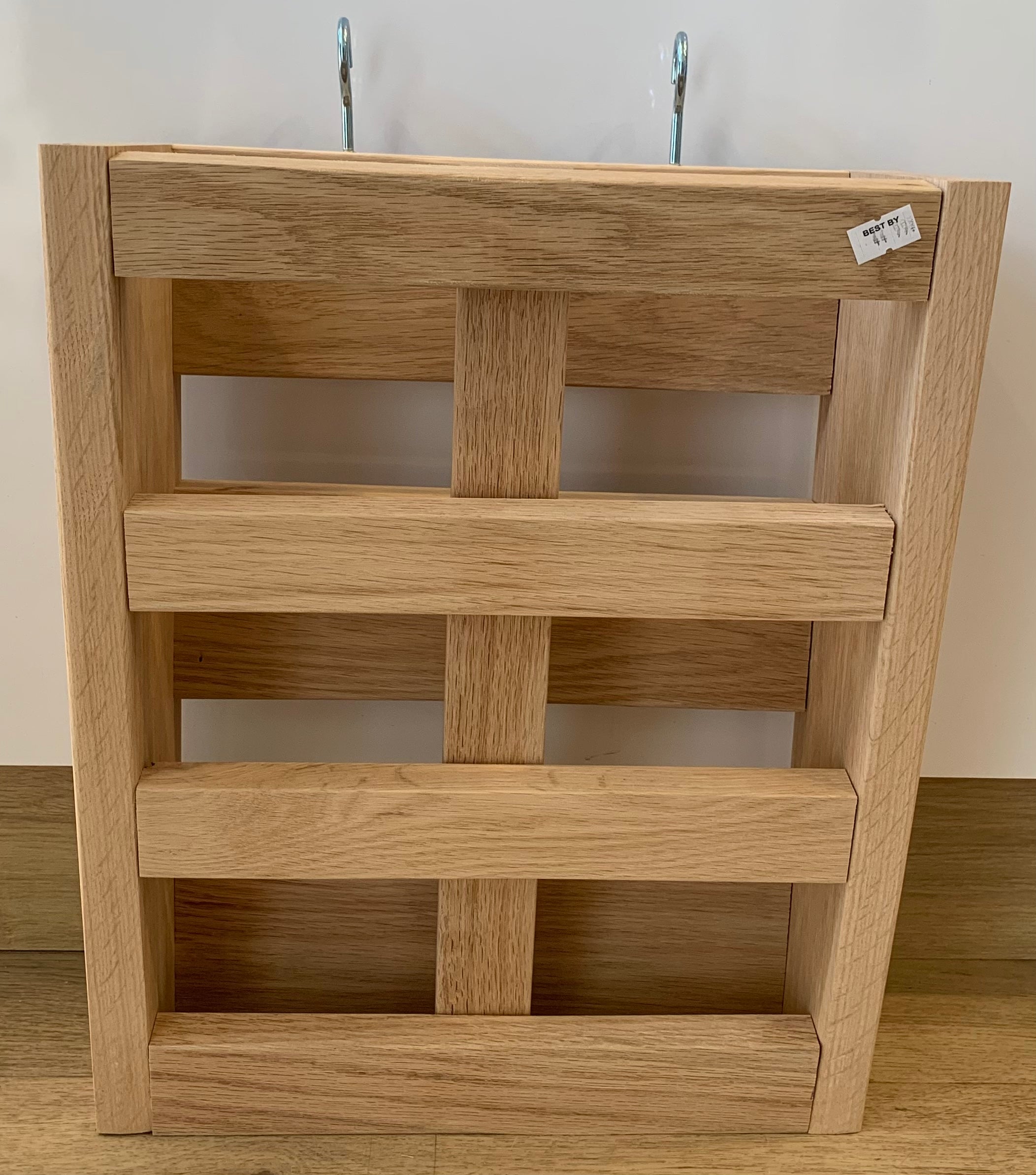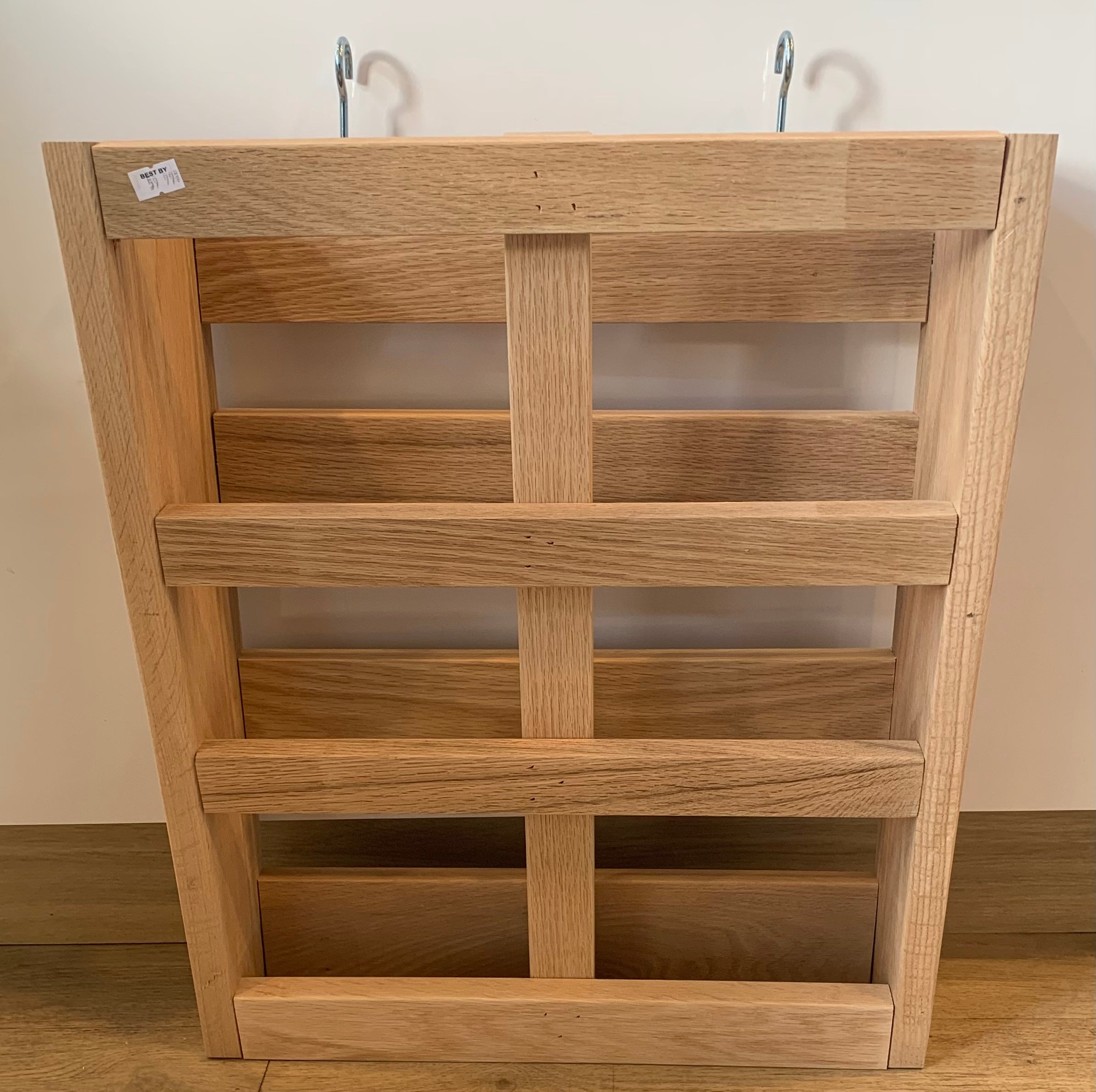 Des râteliers, disponibles en deux grandeurs, fabriqués en chêne par un artisan local.