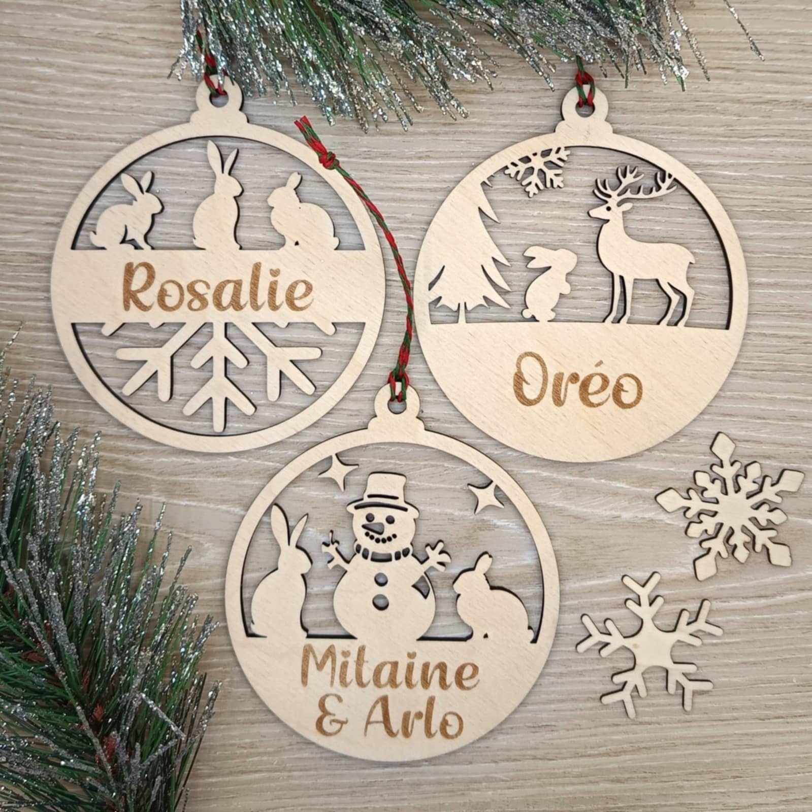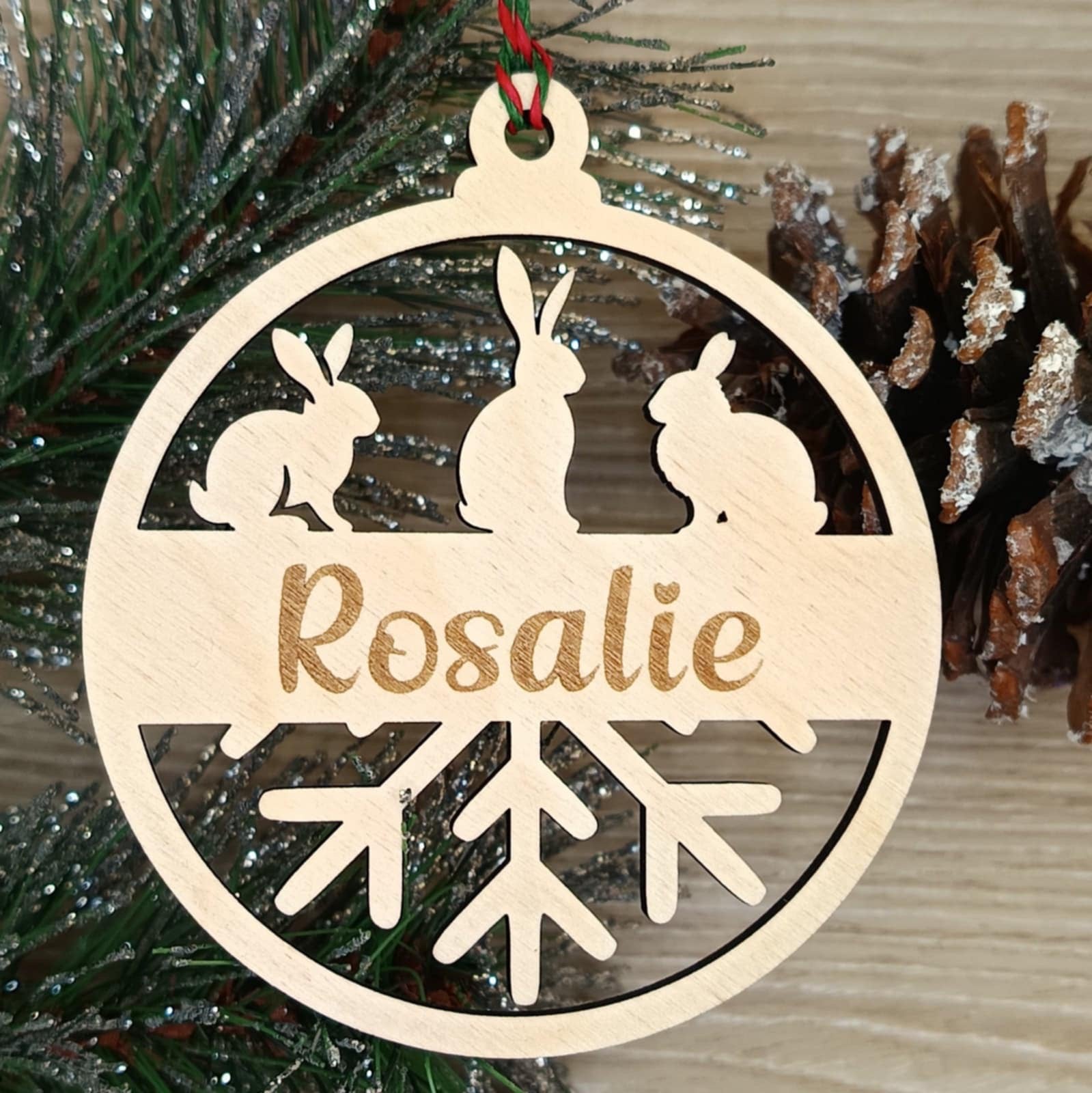 Des petites boules pour l’arbre de Noël à l’effigie de lapins. Inscrivez le ou (les) noms de votre lapin afin d’avoir un souvenir personnalisé de votre petit compagnon poilu. Elles sont en bois et fabriqué par un artisan local.