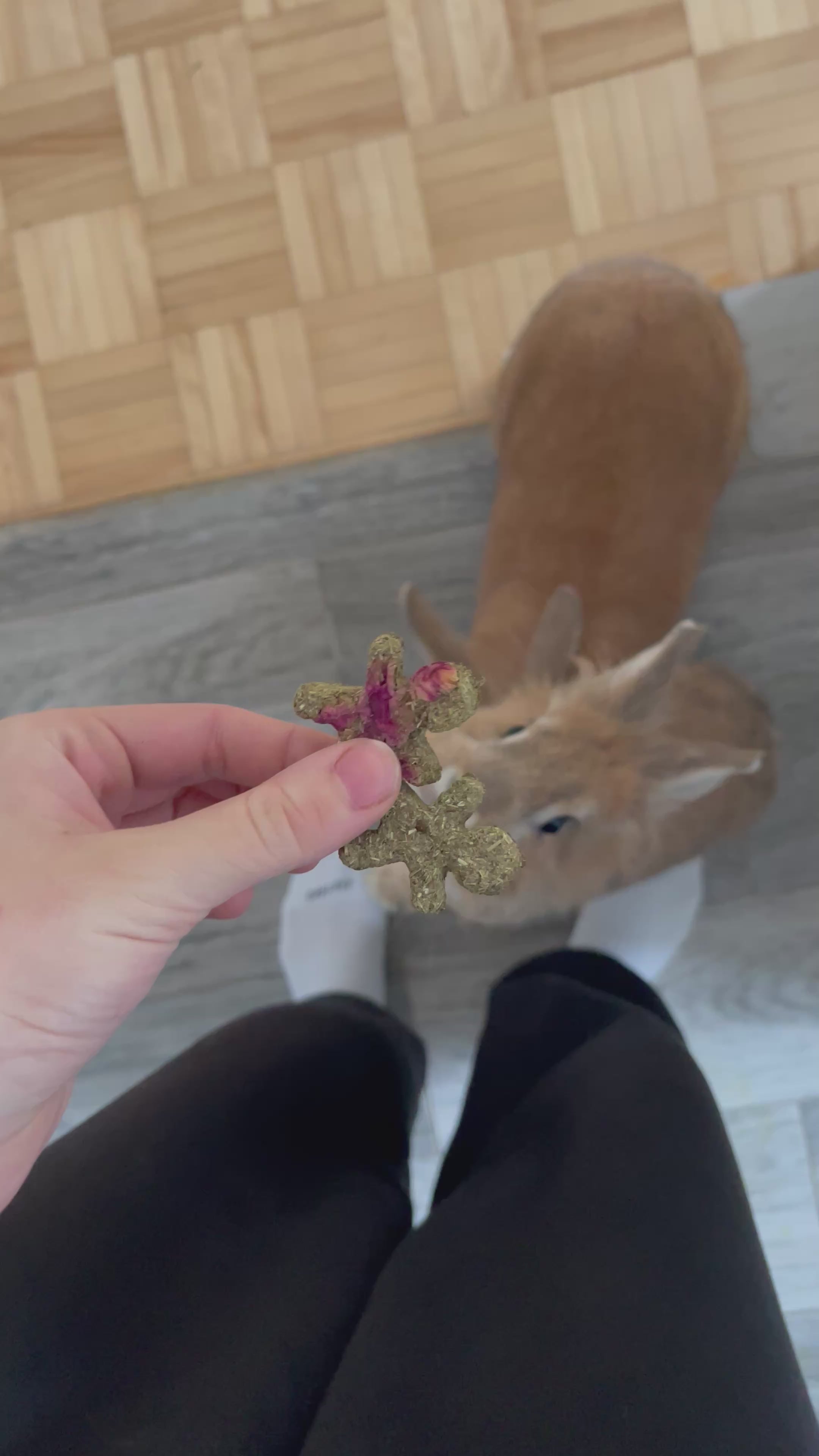 Ingrédients : foin, moulée, pomme, banane, plantain, mélange de fleurs et roses.