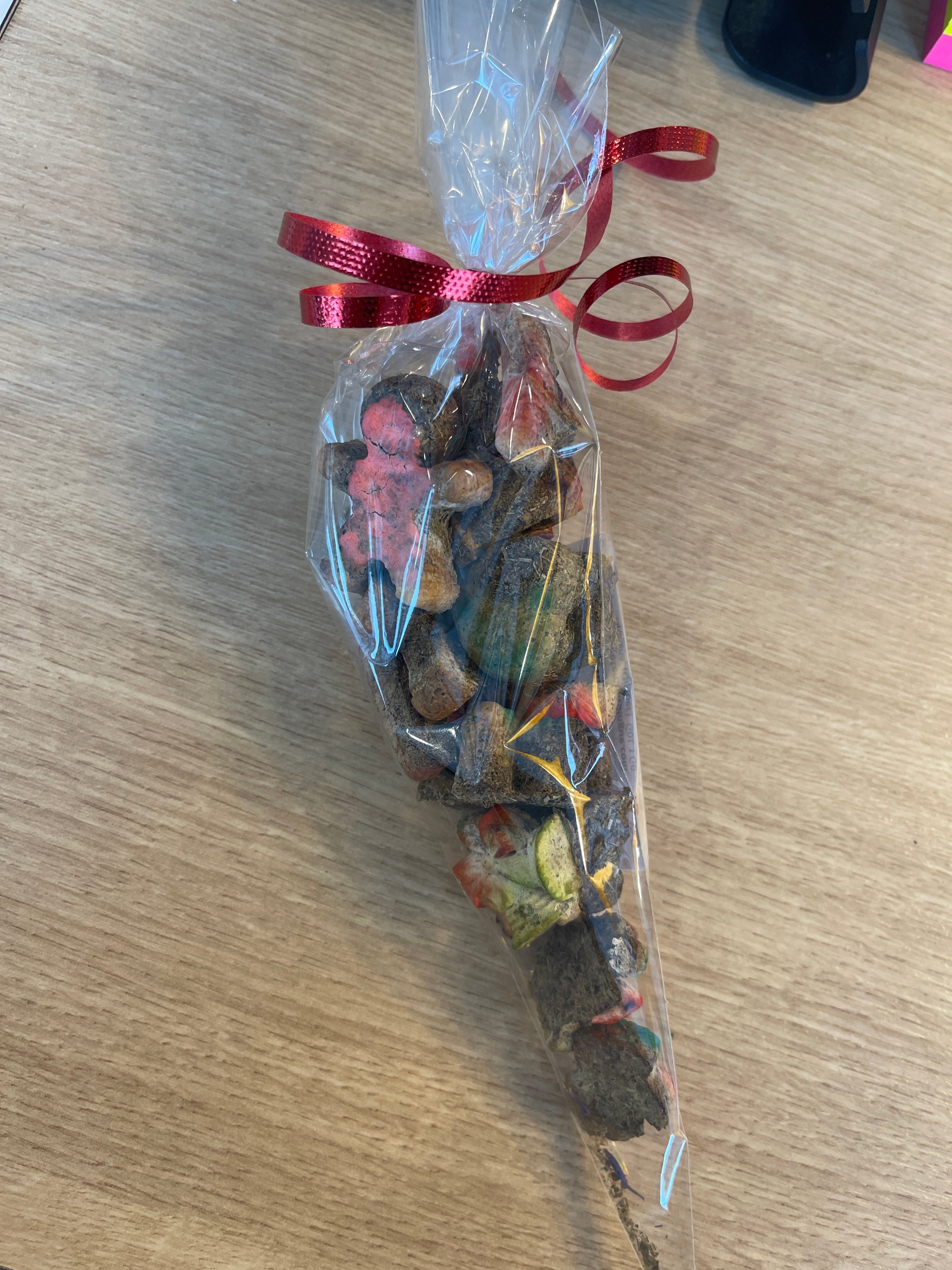 Les cônes de Noël contienne un melange varié de petites friandises thematiques.
