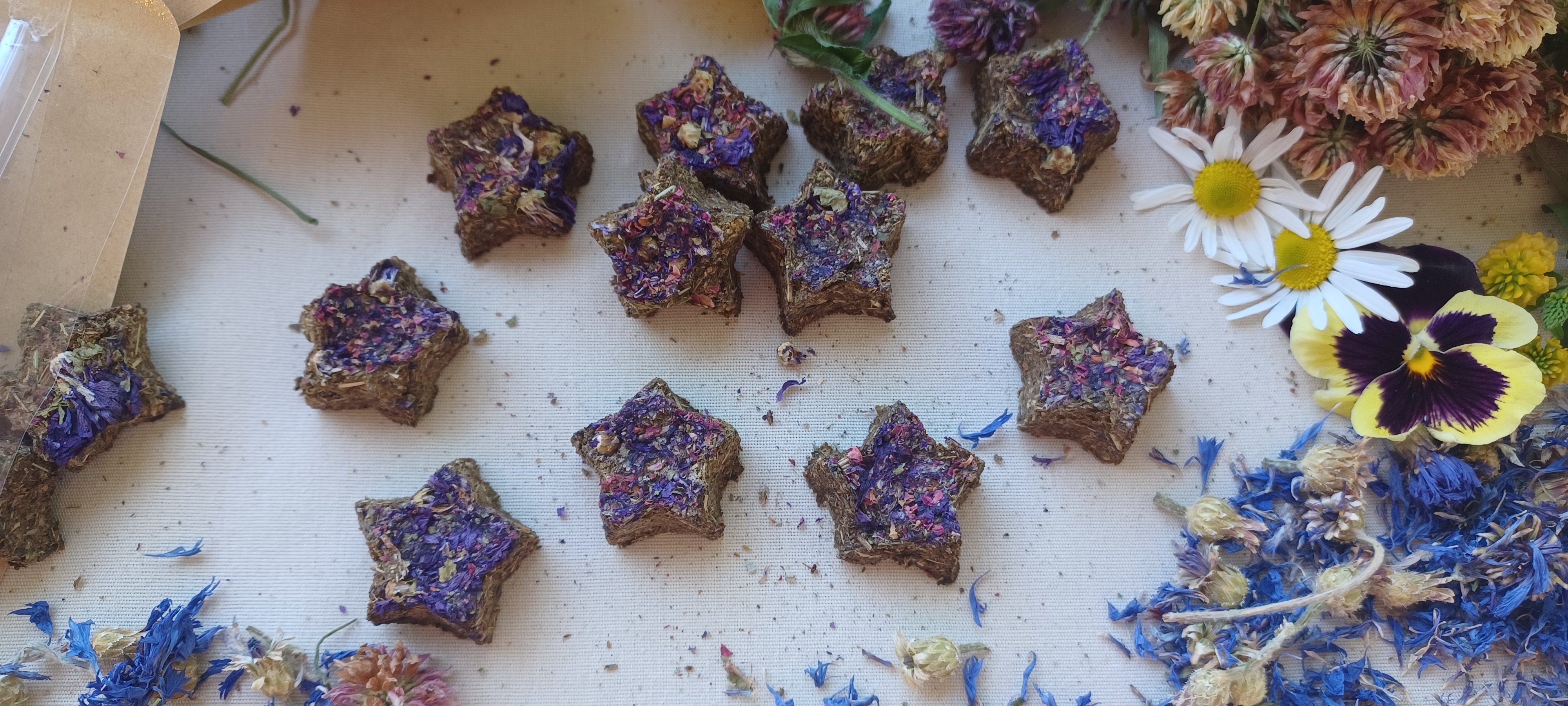 Ces bouchées de foin en forme d'étoile sont si bonnes qu’elles fileront directement dans le gorgoton de vos petits lapins ou cochons d'Inde. Impossible d’y résister!