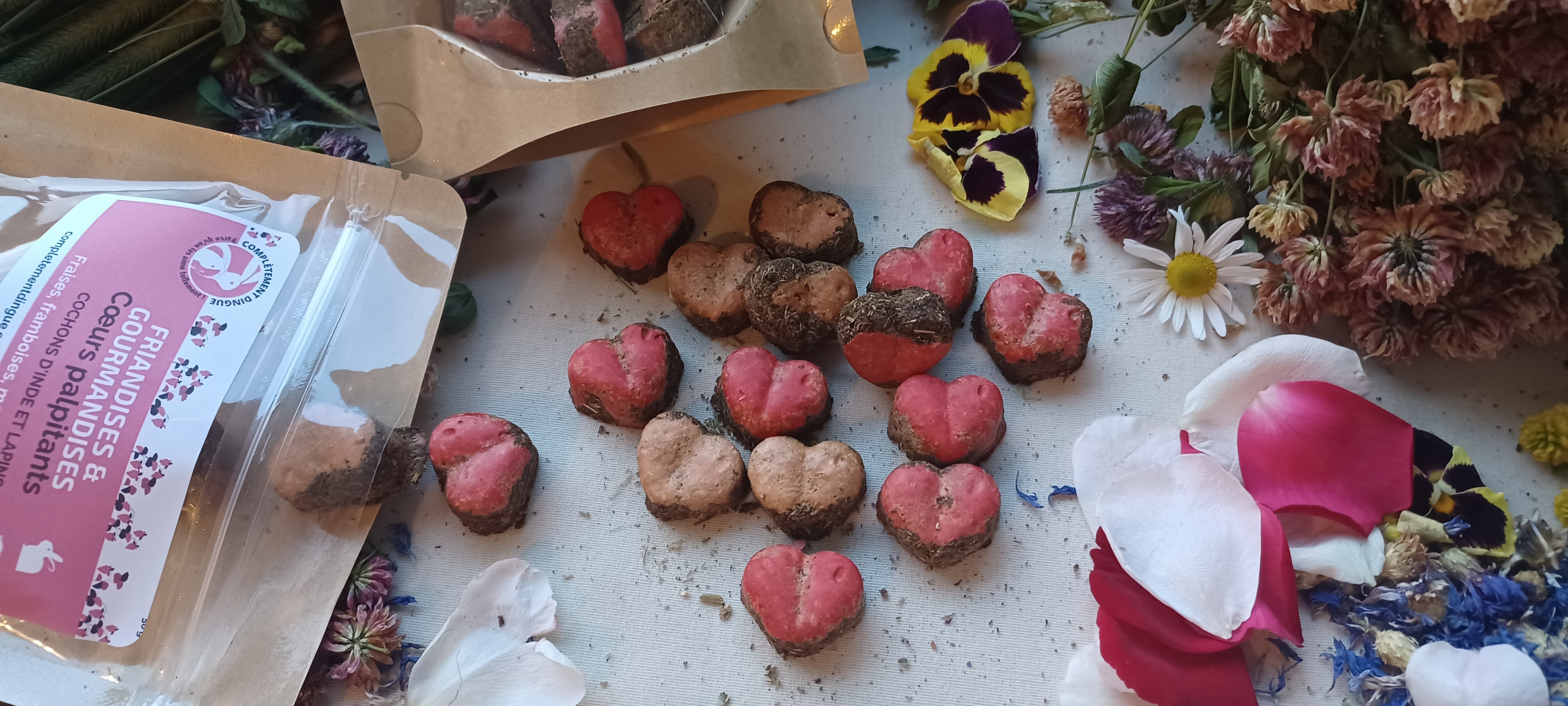 L'ajout de fleurs complète harmonieusement la recette. Elles ajoutent non seulement de la couleur à la ration, mais surtout, elles apportent tous les bienfaits par les plantes. C'est une belle façon d'introduire les fleurs dans l'alimentation qui permet aux rongeurs de varier son alimentation pour lui apporter des vitamines, antioxydants ainsi que plusieurs bienfaits sur leur santé et bien-être.