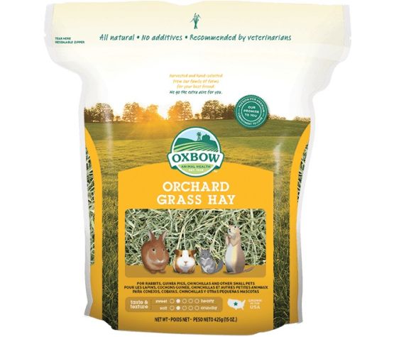 Le foin d’herbe de verger Oxbow est aromatique et riche en fibres.