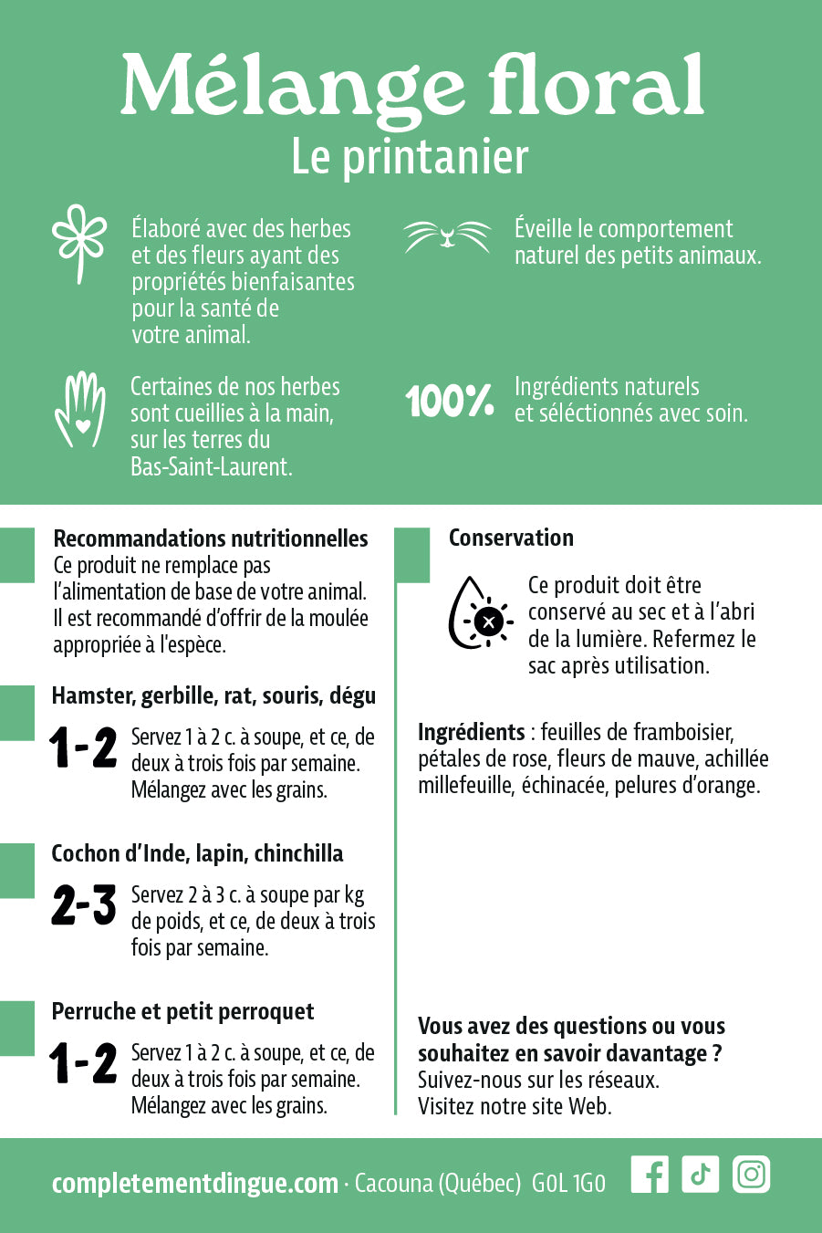 Le mélange floral "Boost immunitaire" devient "Le printanier". La recette ne change pas du tout et les plantes reconnues pour leur bienfaits au niveau du le système immunitaire sont toujours présentes !