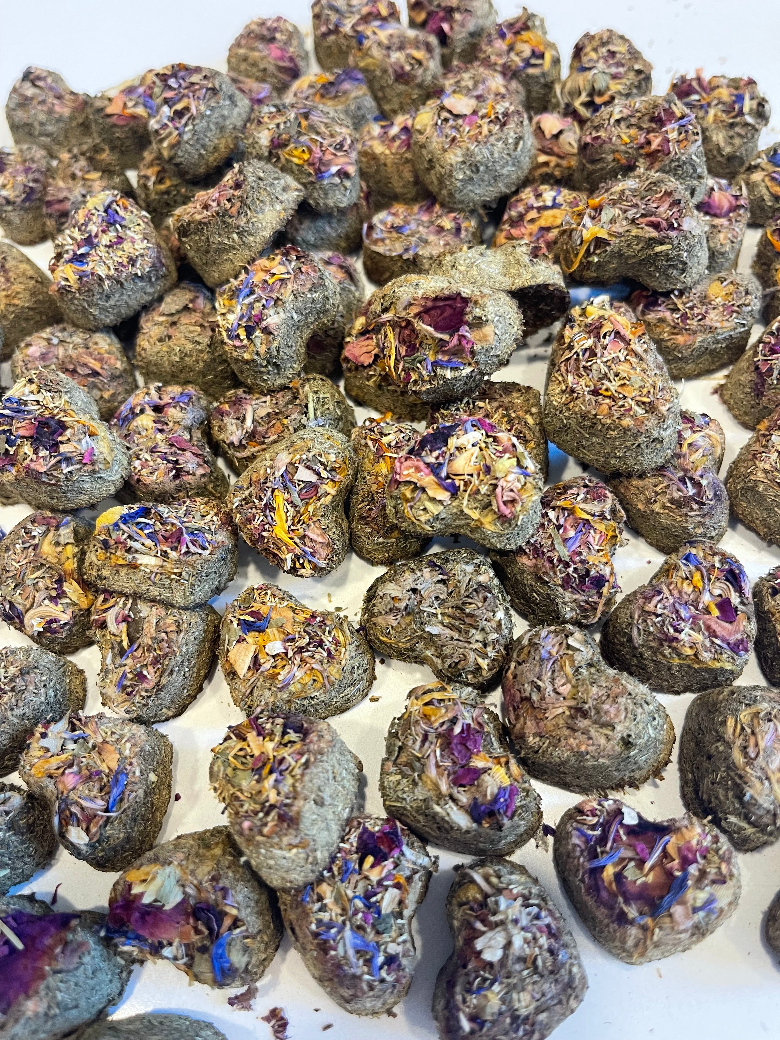 Ingrédients: Foin, mélange de fleurs, pomme, moulée