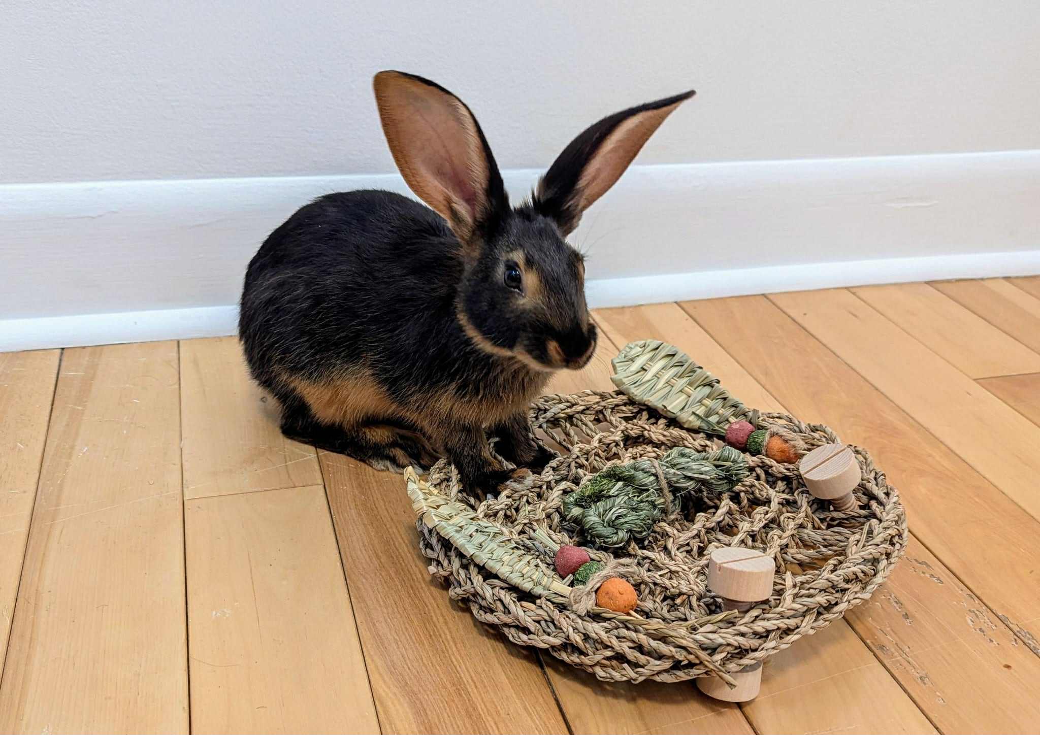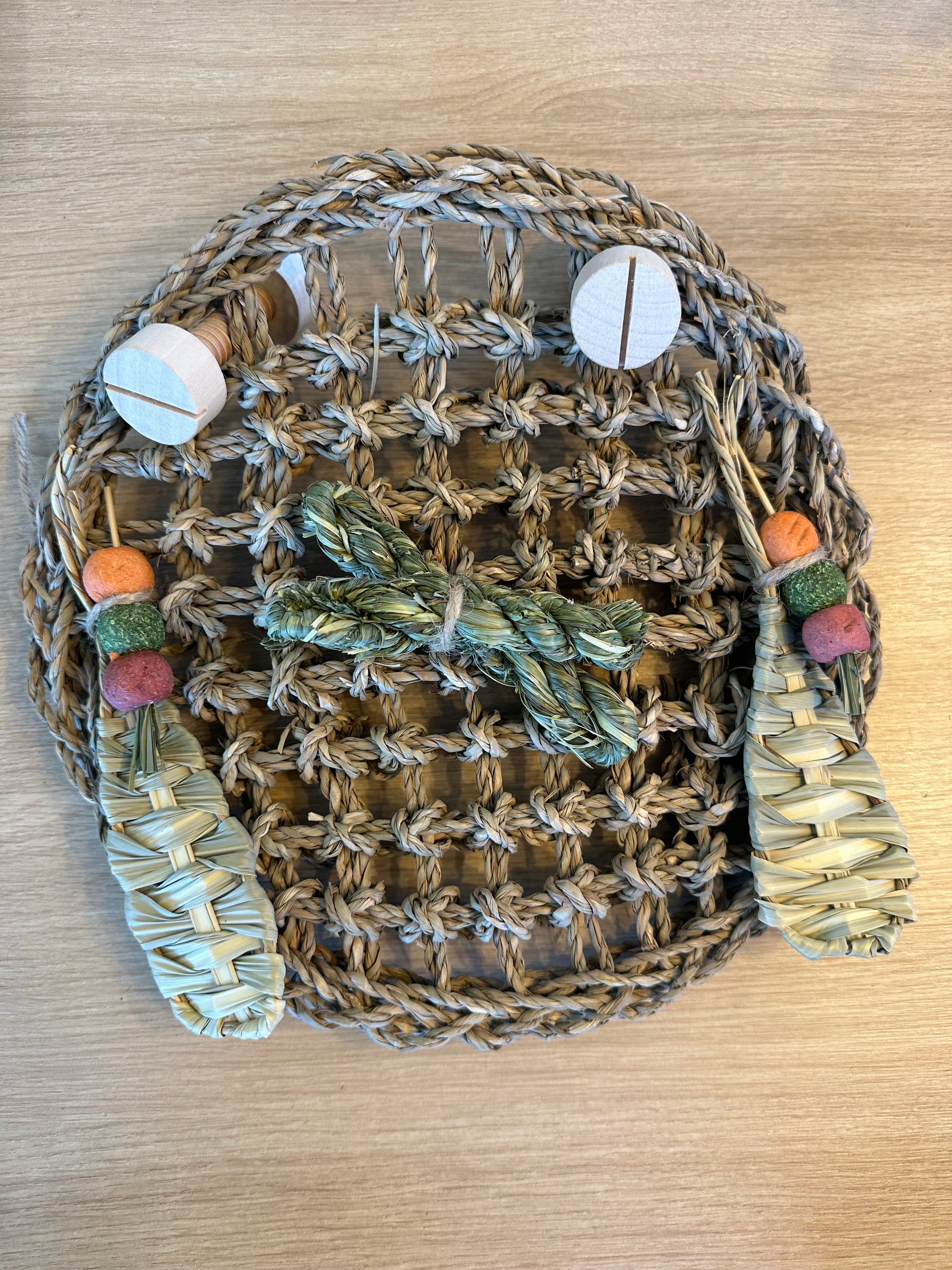 Notre nouveau mur de jeu entièrement comestible. Il est composé de différentes textures pour attirer l’attention et l’appétit de votre lapin.