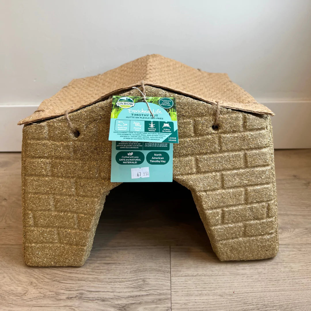 Fabriqué avec du fléole des prés compressé. Comestible à 100%. L’ objet par excellence pour satisfaire les besoins de gruger de votre lapin.