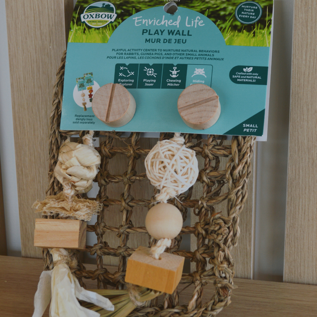 Le mur de jeux de Oxbow est fait matériel sécuritaire et naturel comme du foin et du bois. Votre petit compagnon va adorer grignoter, explorer et jouer avec ce jeu unique. Offrez le meilleur des mondes avec le mur de jeux d'enrichissement de Oxbow.