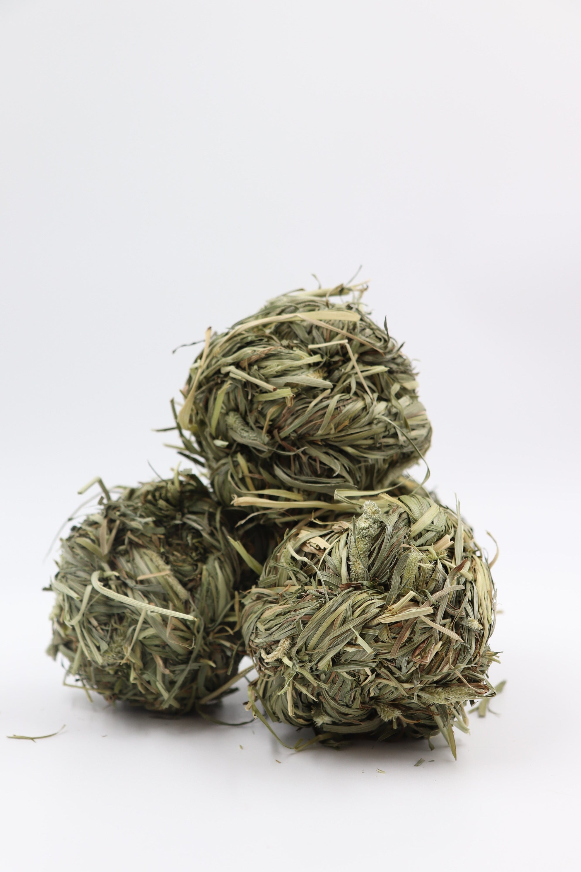 Nos balles de foin sont de retour. Vos lapins vont, à la fois, s’amuser et se régaler. Fabriquées avec du foin des fléole.