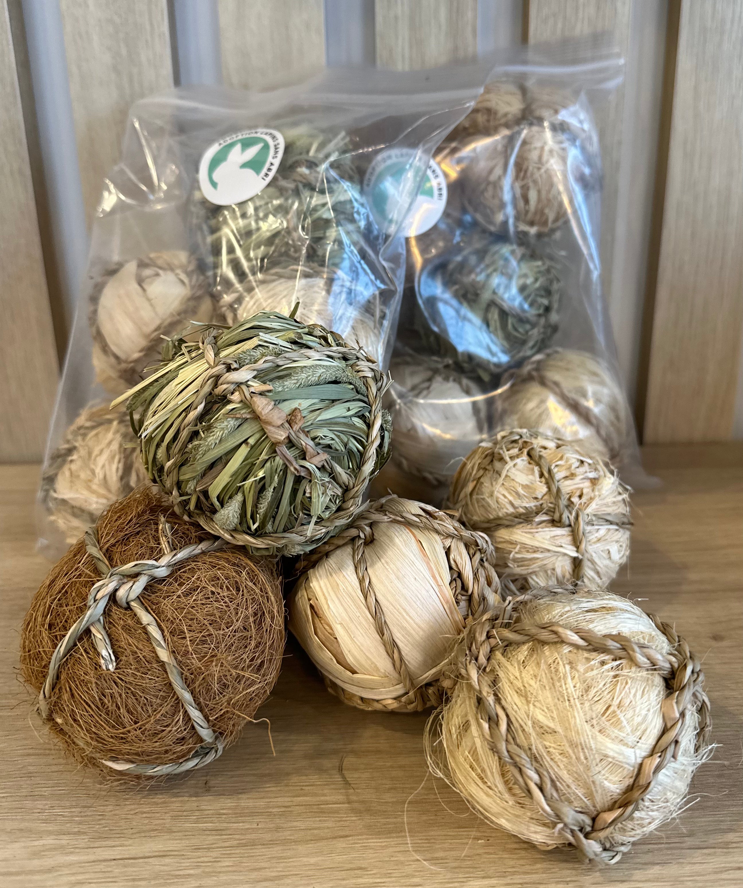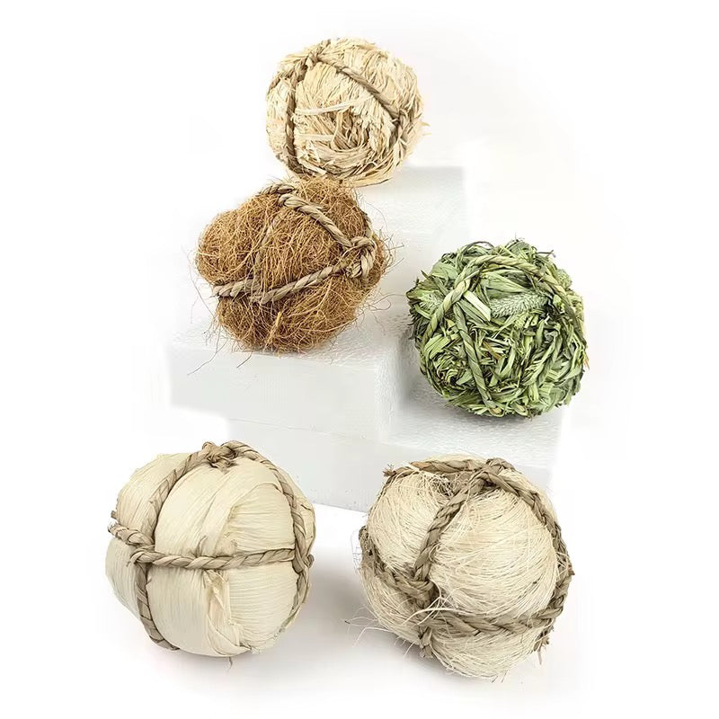 Nos balles méli-mélo, vendues en paquet de cinq, sauront amuser et divertir votre lapin. Cinq modèles différents. Entièrement comestible.