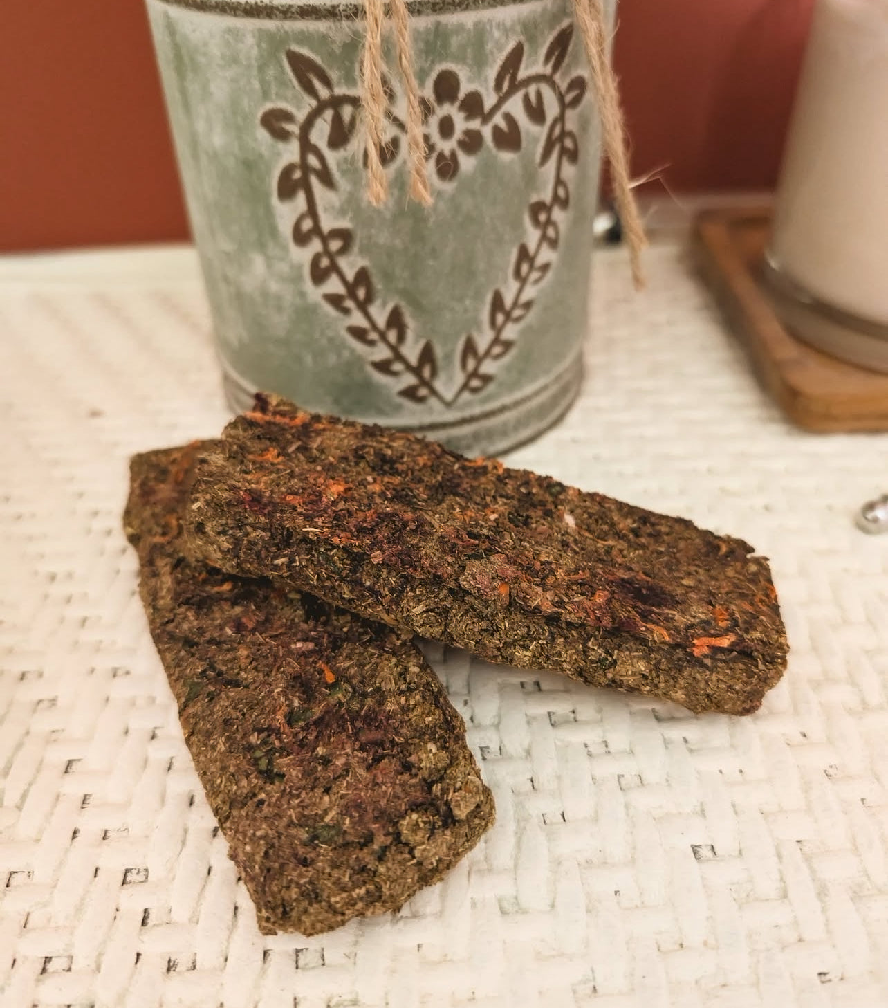 Friandises naturelles ! Ingrédients: carotte, pomme, feuilles de betterave. Fait au Québec.