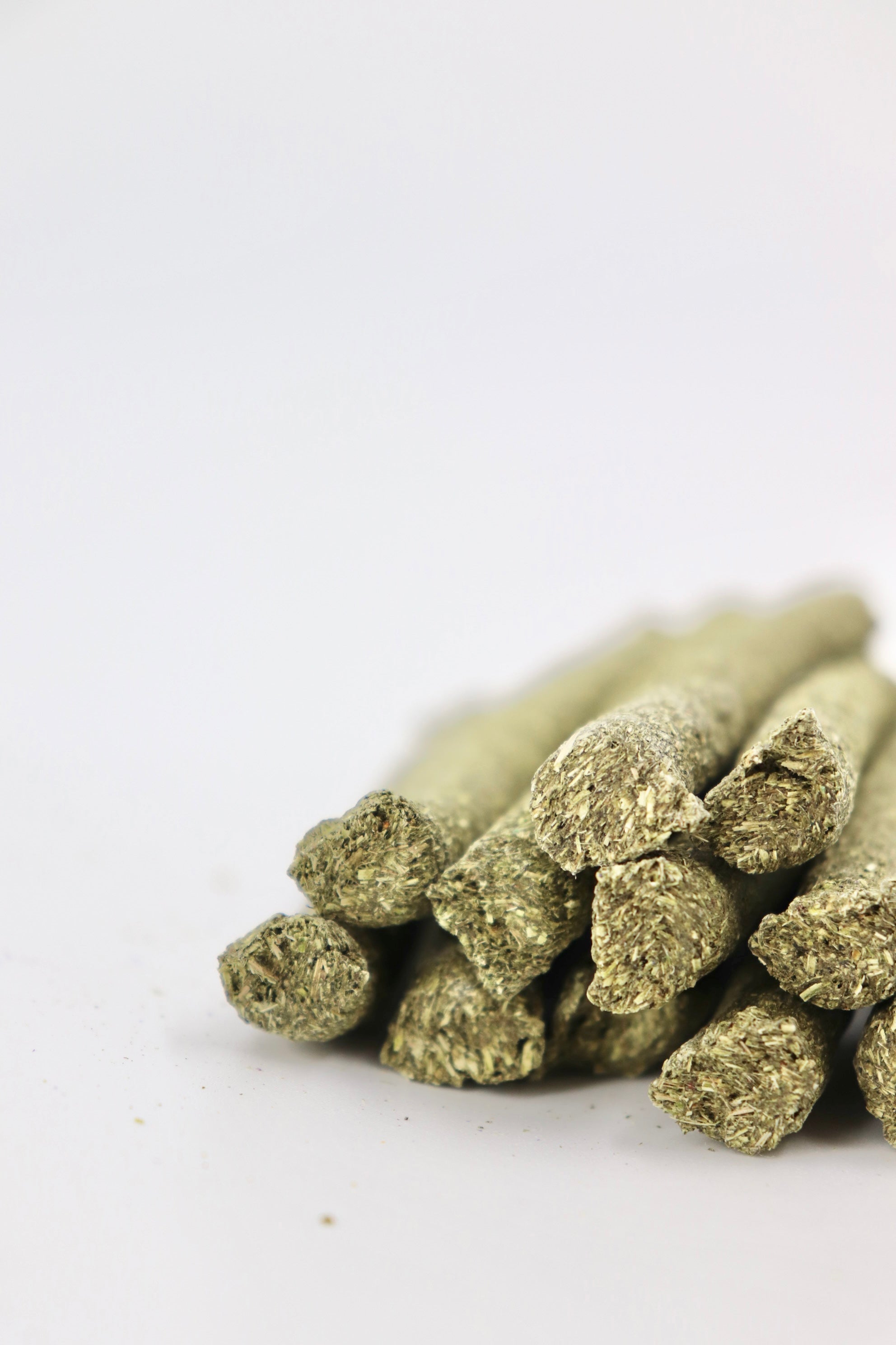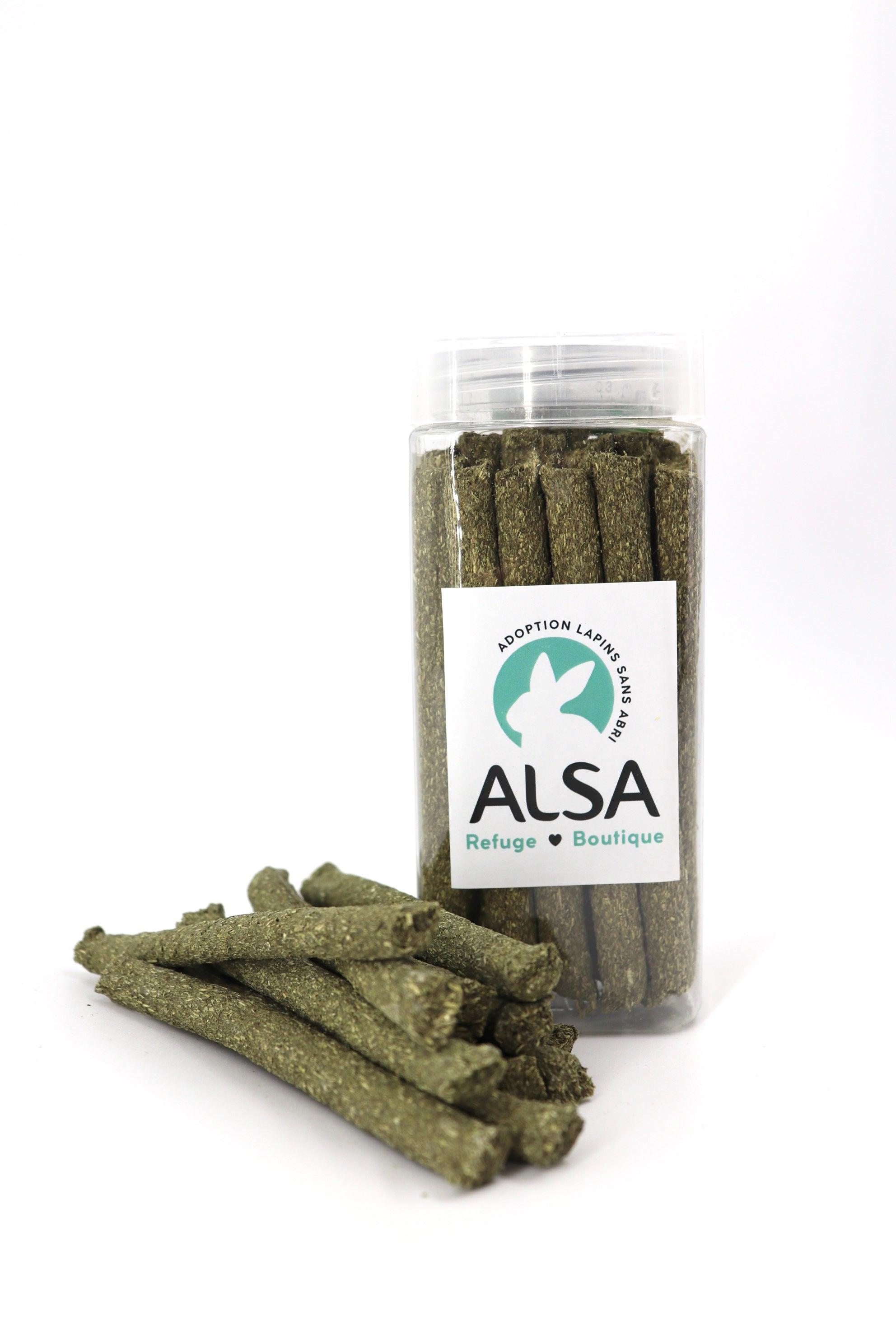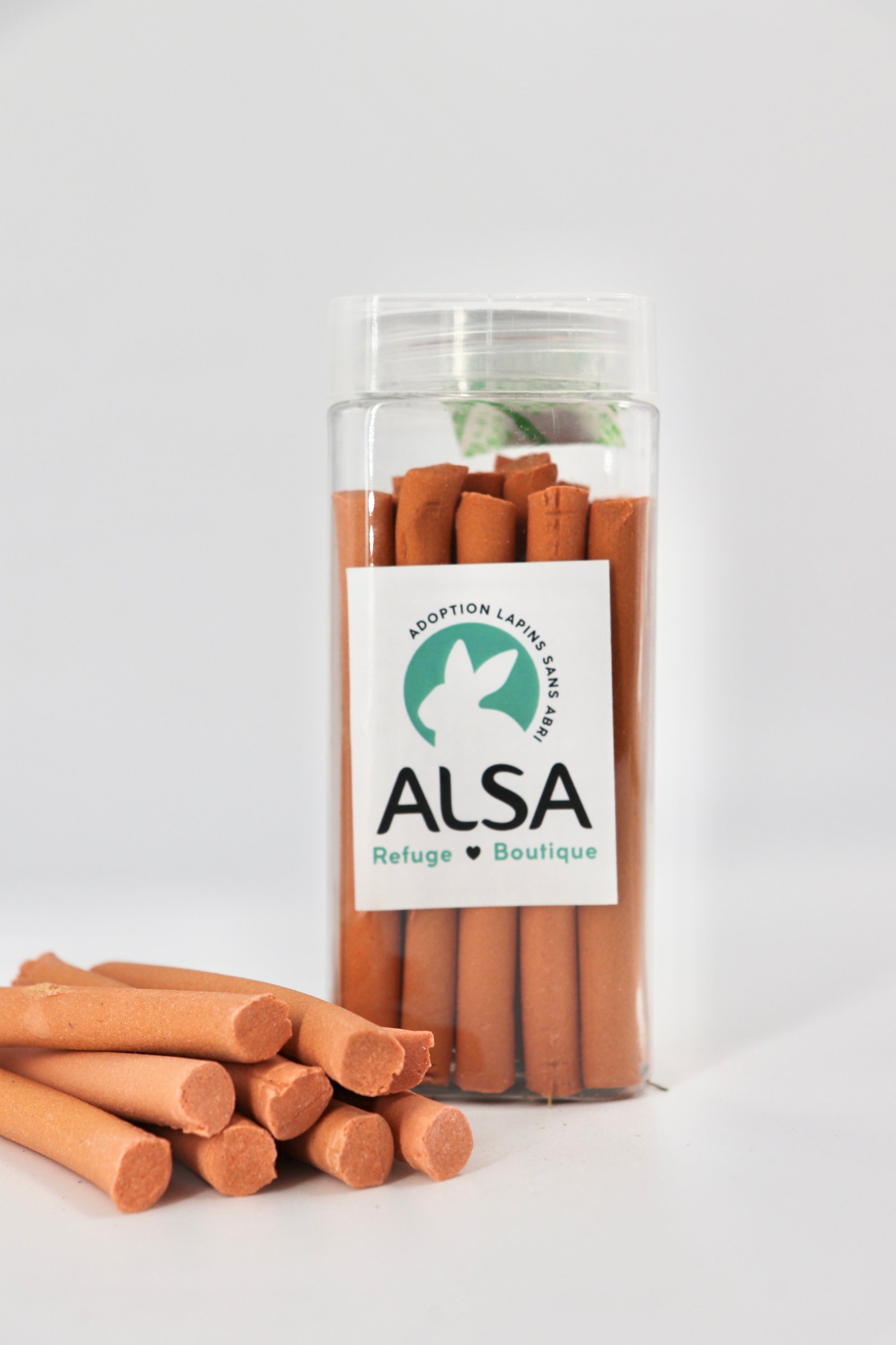 Des bâtonnets de foin compressé pour gâter votre lapinou. Deux variétés soit fléole des prés et carottes.