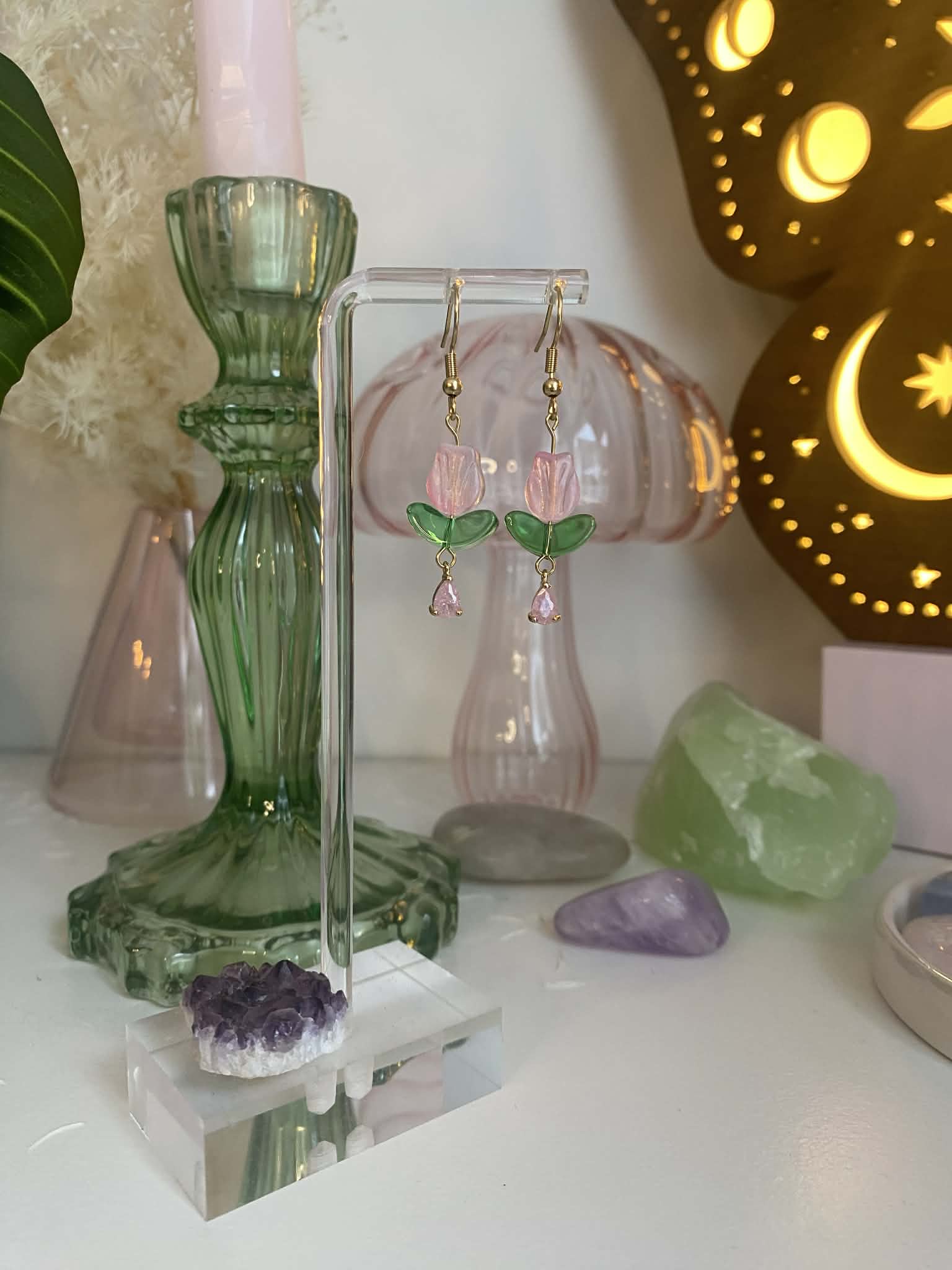 Boucles d'oreilles tulipes et zircons - Pour Avril