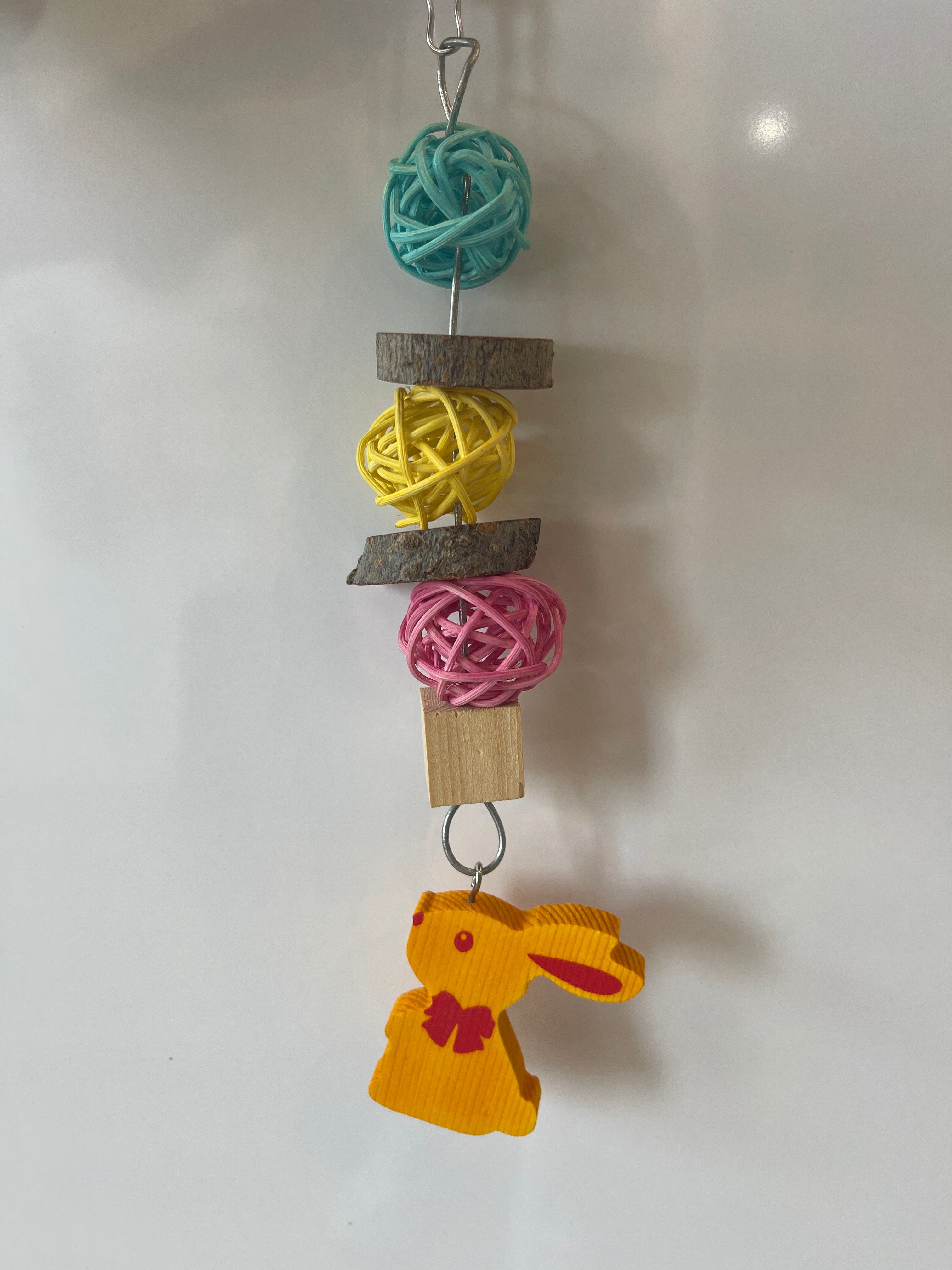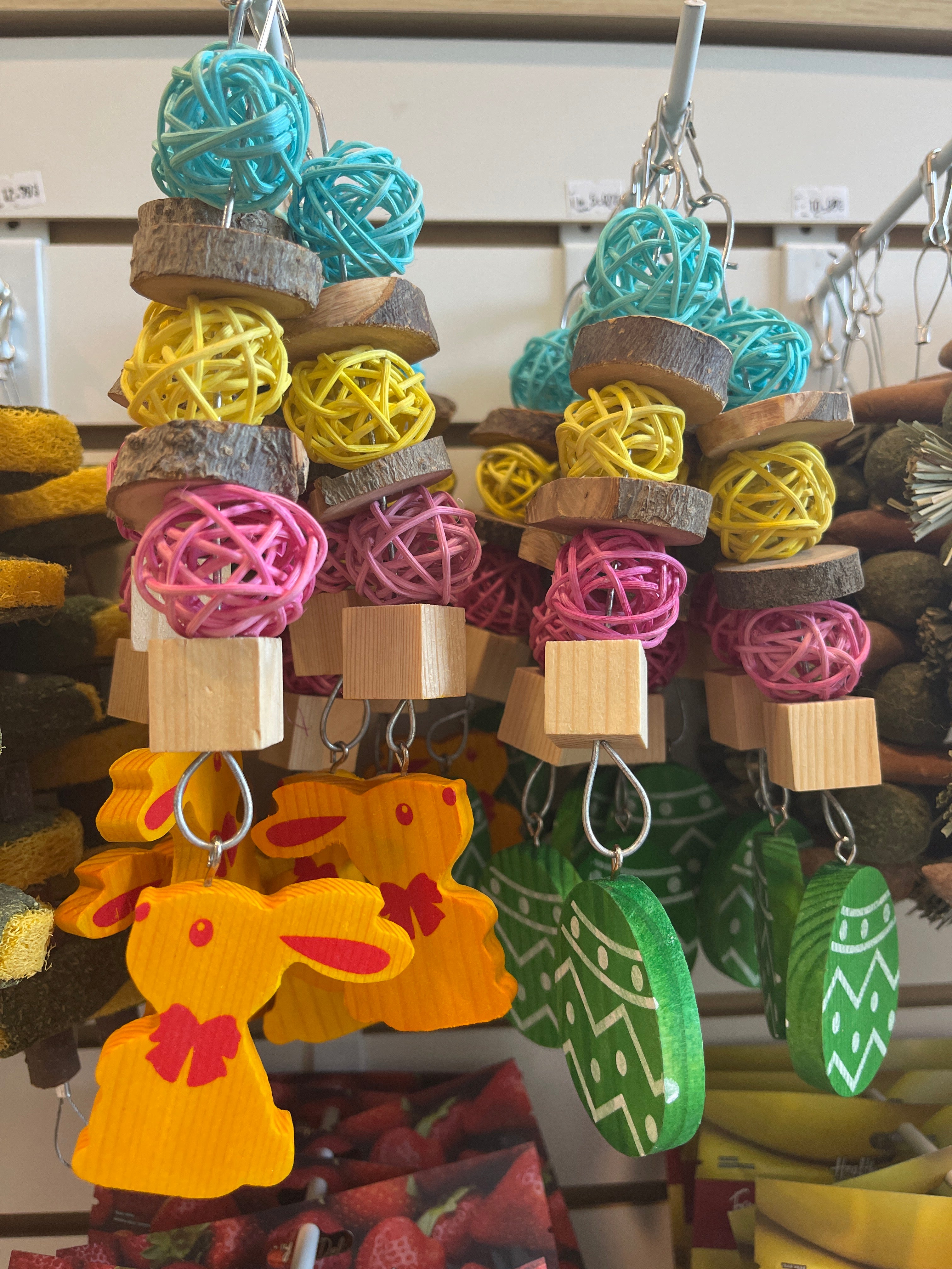 Des textures de bois variés pour un lapin qui aime gruger. S’accroche facilement sur l’enclos.