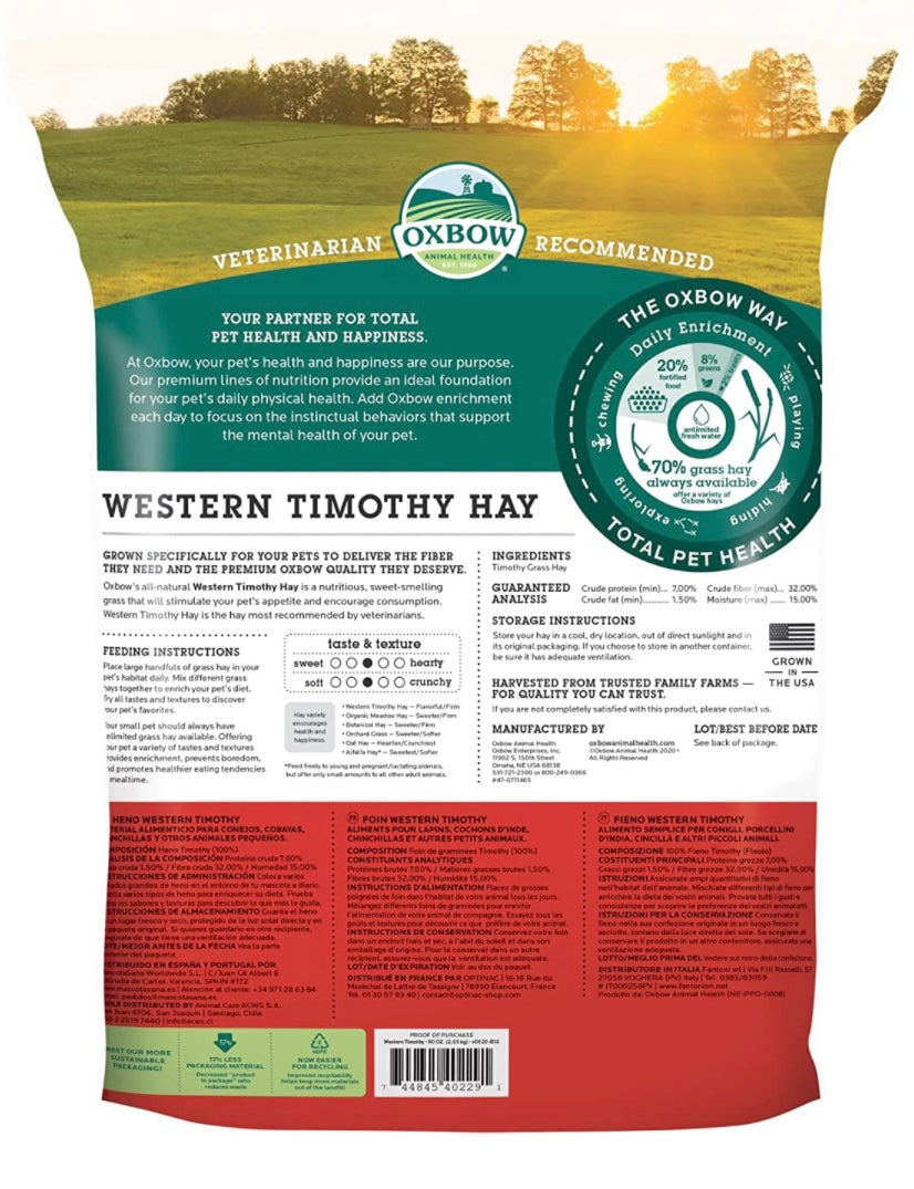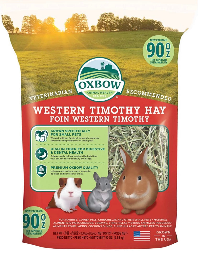 Oxbow All-Natural Western Timothy Hay is a nutritious, good-smelling grass that will stimulate the appetite of your rabbit, guinea pig or other small pets.