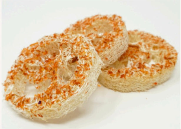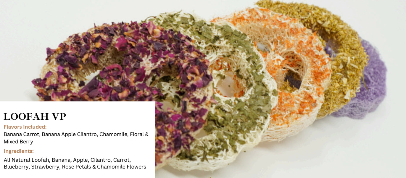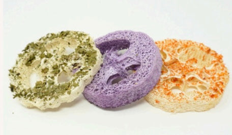 Des loofahs, 100 % naturels et comestibles. Excellents pour les dents de votre compagnon poilu.