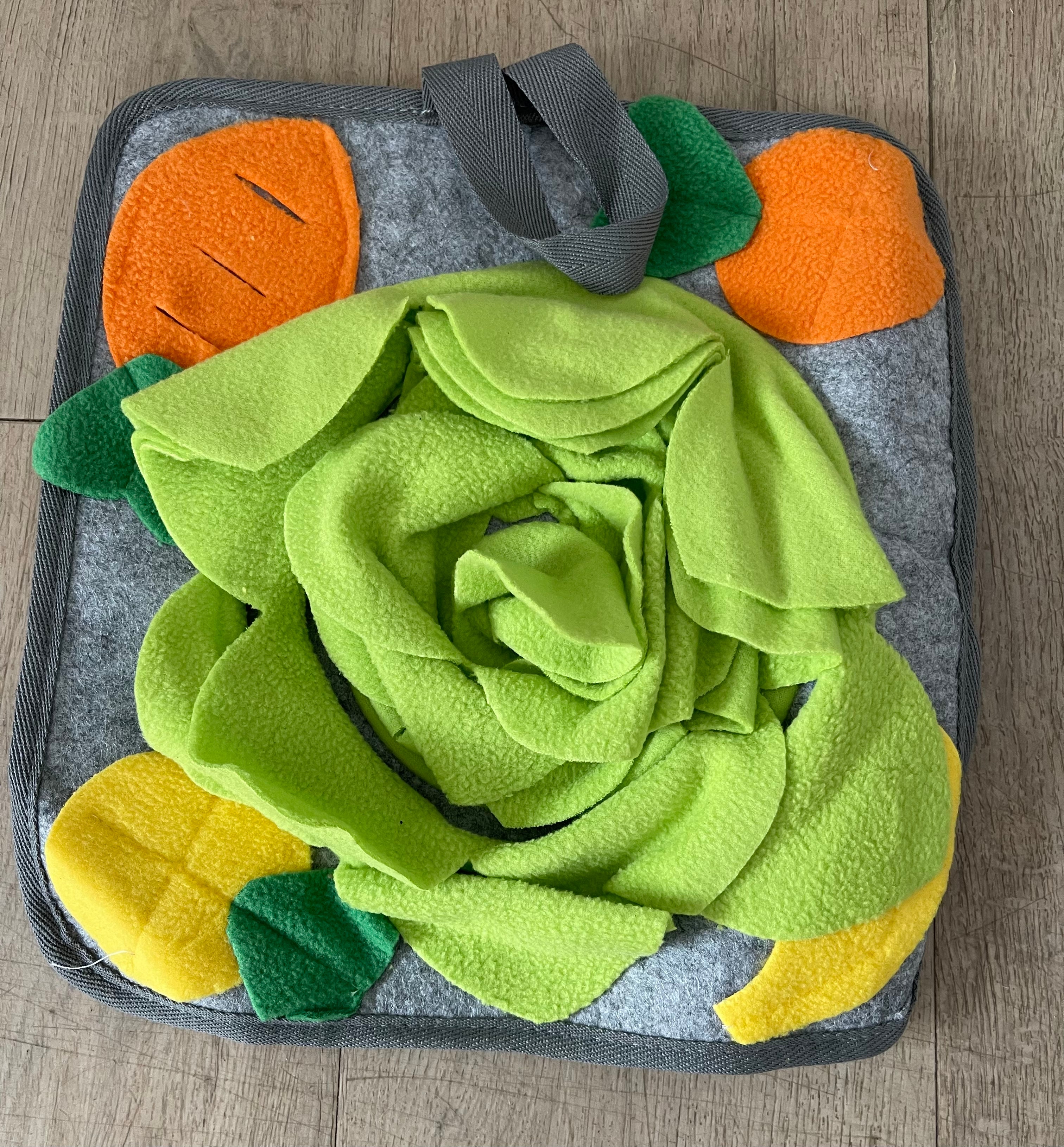 Our brand new digging mats, made of fleece, are very gentle on your rabbits' paws. An excellent place to hide food and treats to stimulate your furry companion. The back is non-slip.