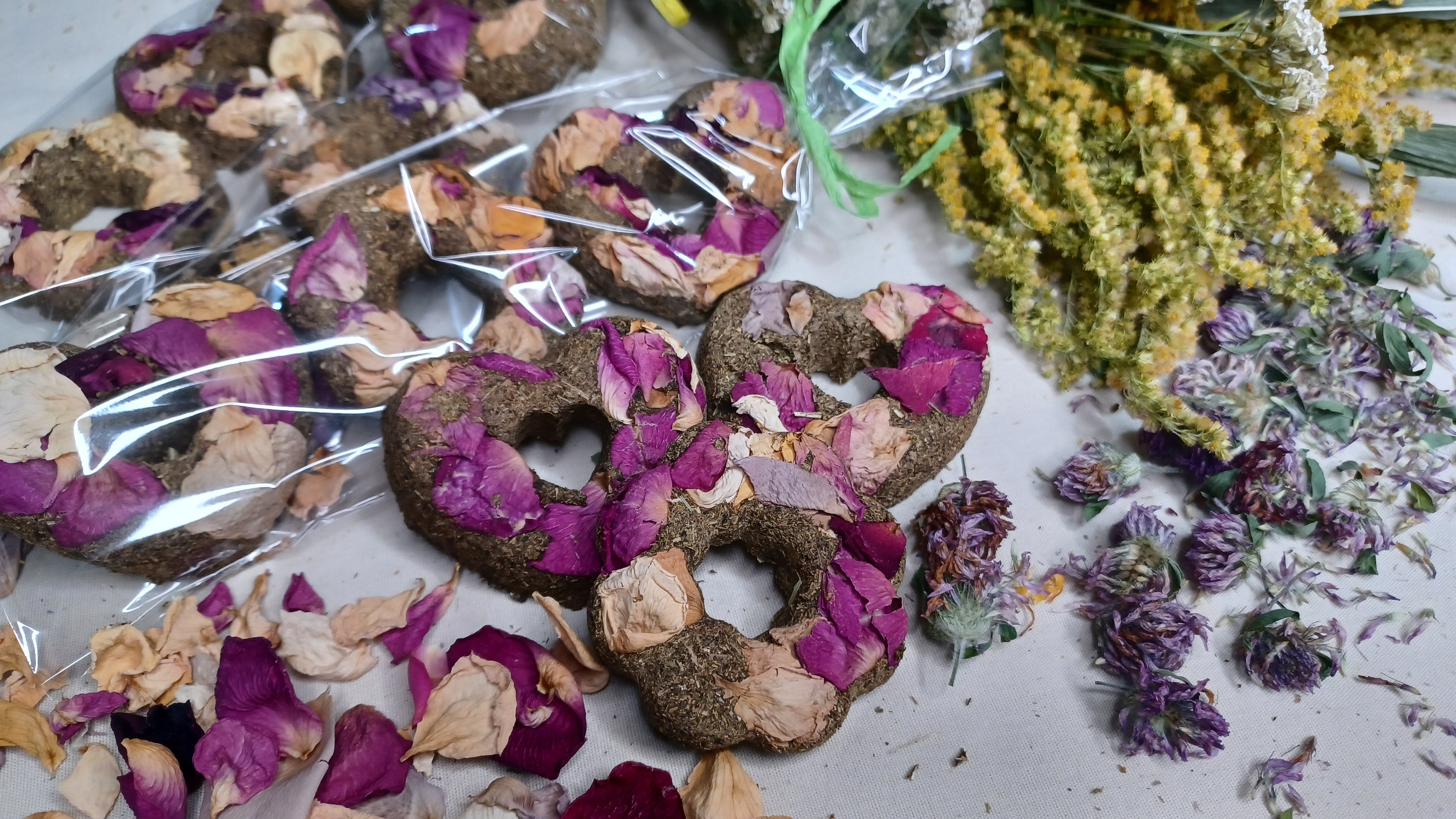 PLEASE NOTE: These treats contain herbs that have been chosen based on their natural properties and benefits mentioned in the literature. These treats are a supplement to the main diet but do not replace the basic diet of hay, balanced feed, fruits and vegetables recommended depending on the species. They cannot be considered as medicine. Always introduce new treats slowly. Some animals have more sensitive digestive systems, so remove all treats immediately if a problem arises. Space out the quantities served during the introduction by a few days. If a more serious problem occurs, consult an animal health specialist.