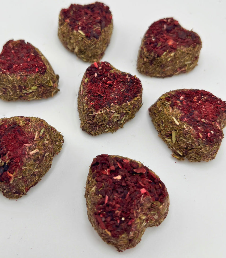 Généreusement emballé avec des biscuits en forme de cœur de 1,5 pouce, offrant plusieurs portions pour le plaisir de votre lapin.