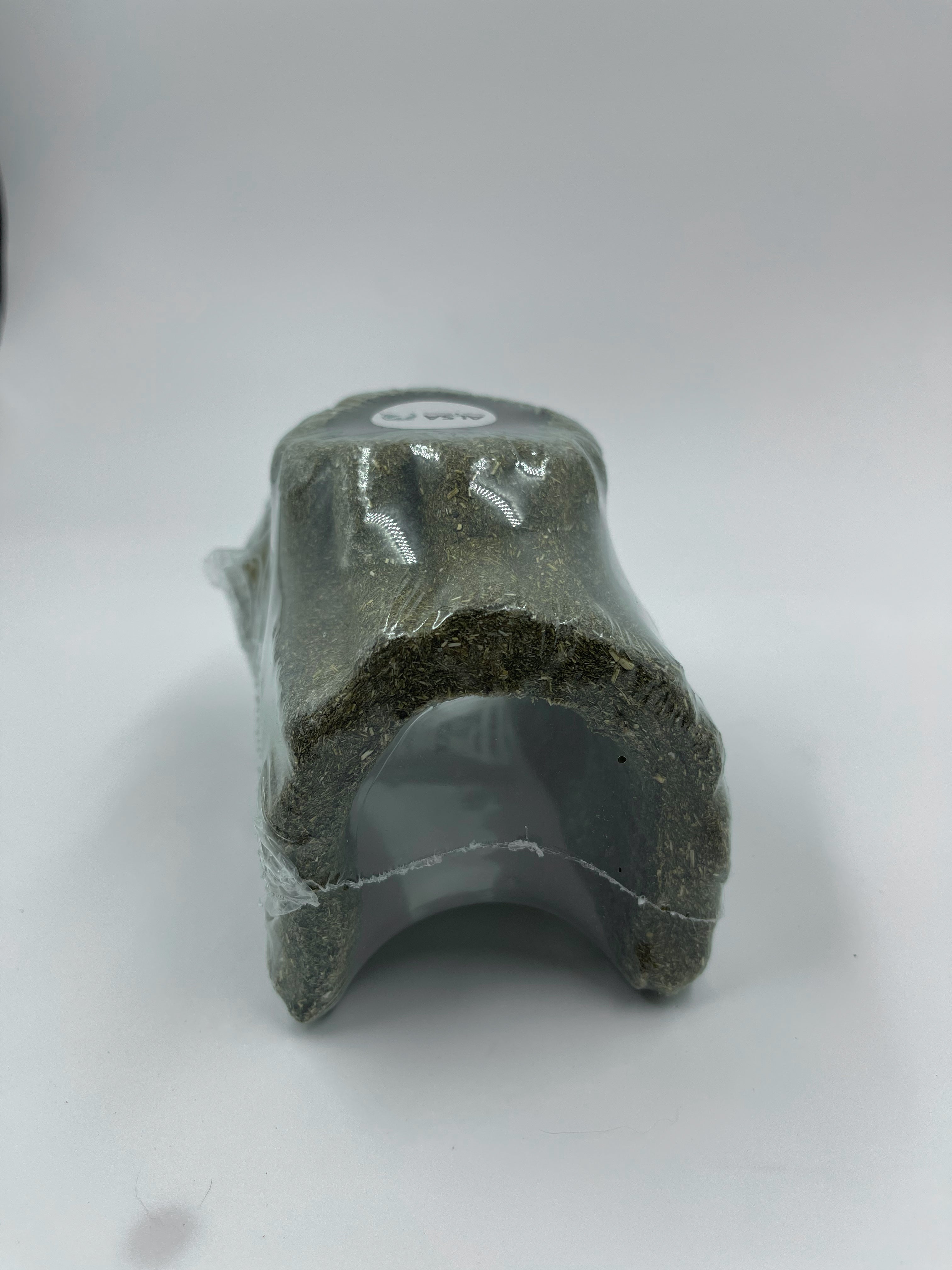 Une bûche en fléole compressé pour satisfaire la volonté de gruger de vos lapins.