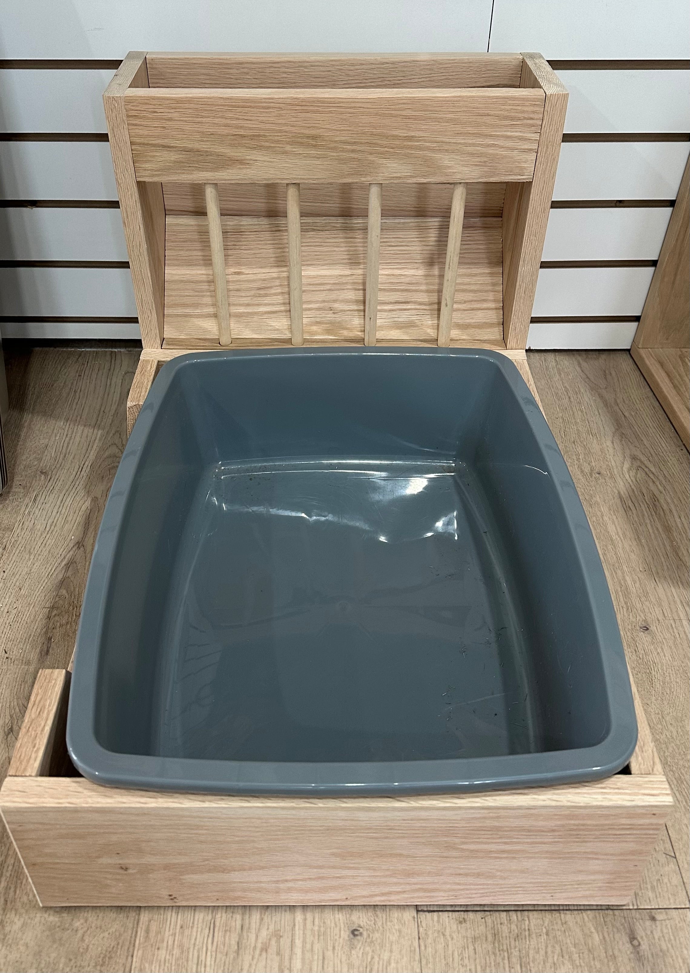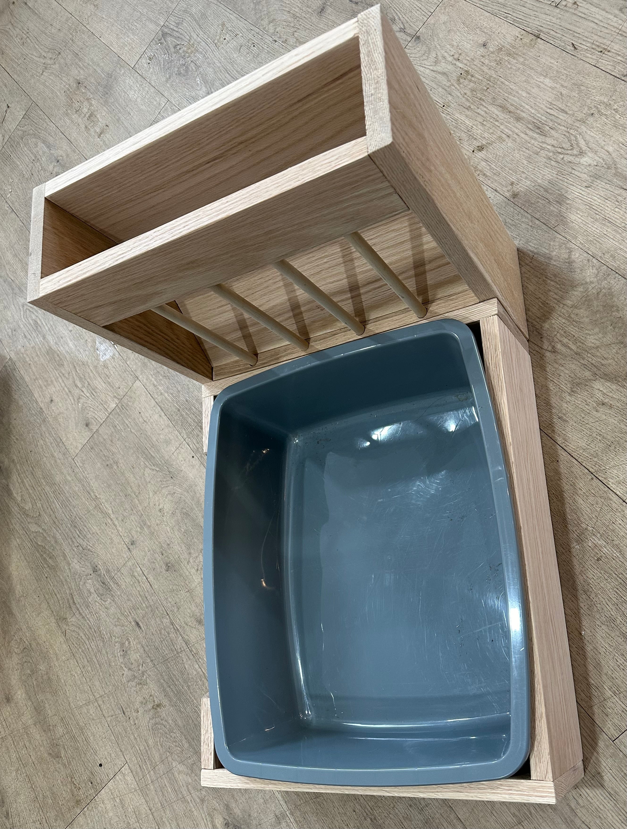 Fabriqué par un artisan local, en chêne 100%, ce combo râtelier-litière est parfait pour vos lapins.